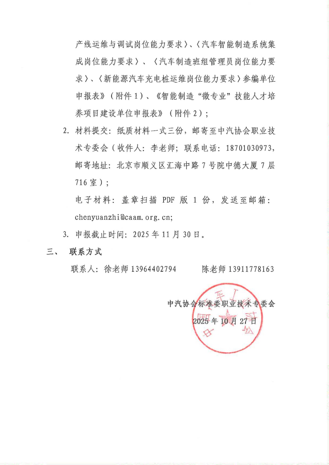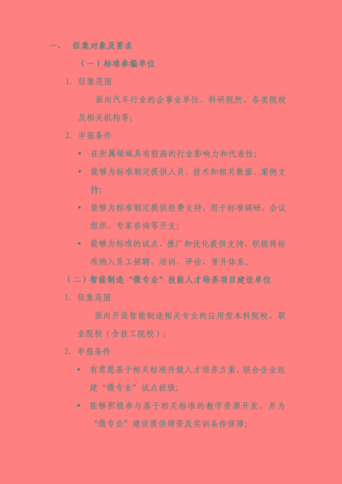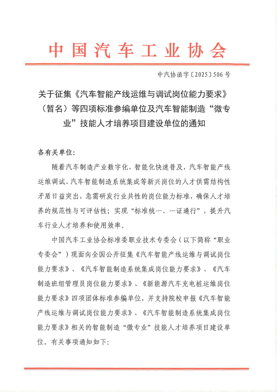 对于征集《汽车智能产线运维与调试岗位能力要求》(暂名)等四项标准参编单位及汽车智能制造“微专业”技能人才培养项目建设单位的通知